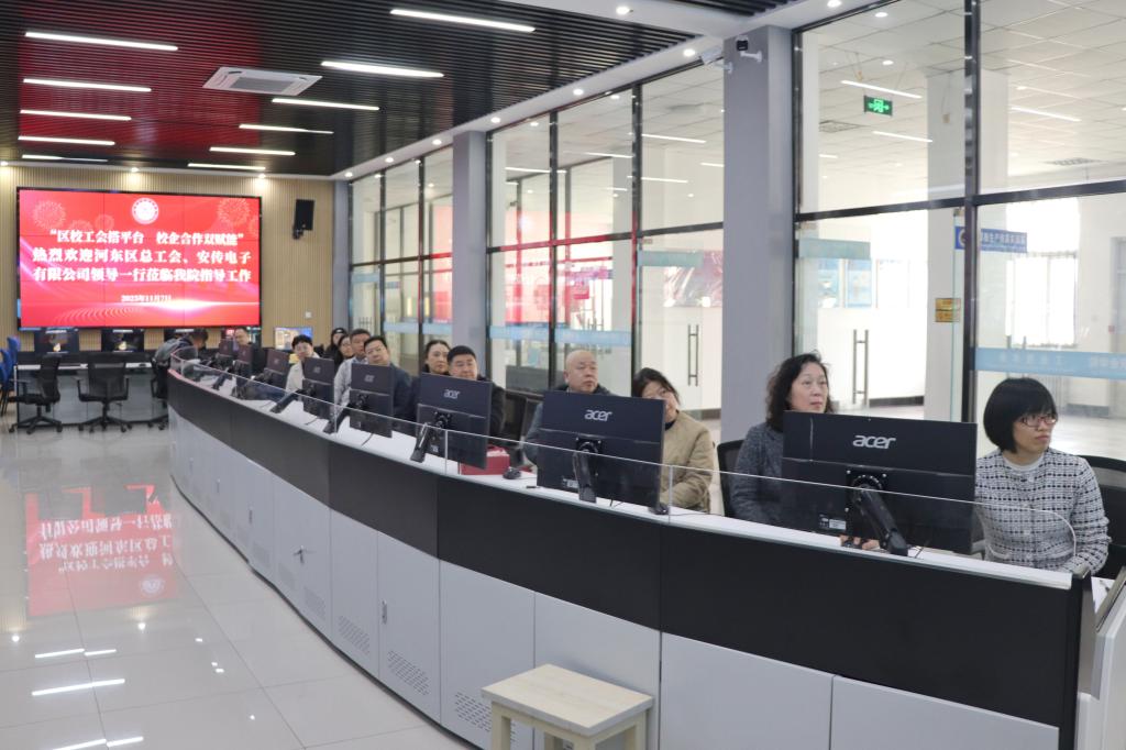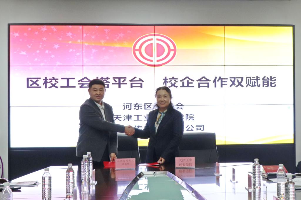 2025 年 11 月 6 日下午,天津工业职业学院校园暖意融融。河东区总工会、天津安传电子有限公司与学院以“区校工会搭平台 校企合作双赋能”为主题,联合开展系列交流合作活动。政校企三方齐聚,旨在共探产教融合新路径,为区域高质量发展凝聚合力。